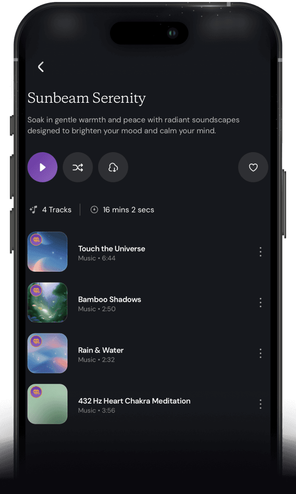 Most tracks in Resonance are melodic healing music infused with frequencies. Some feature minimalist pure tones for focused vibrational work.