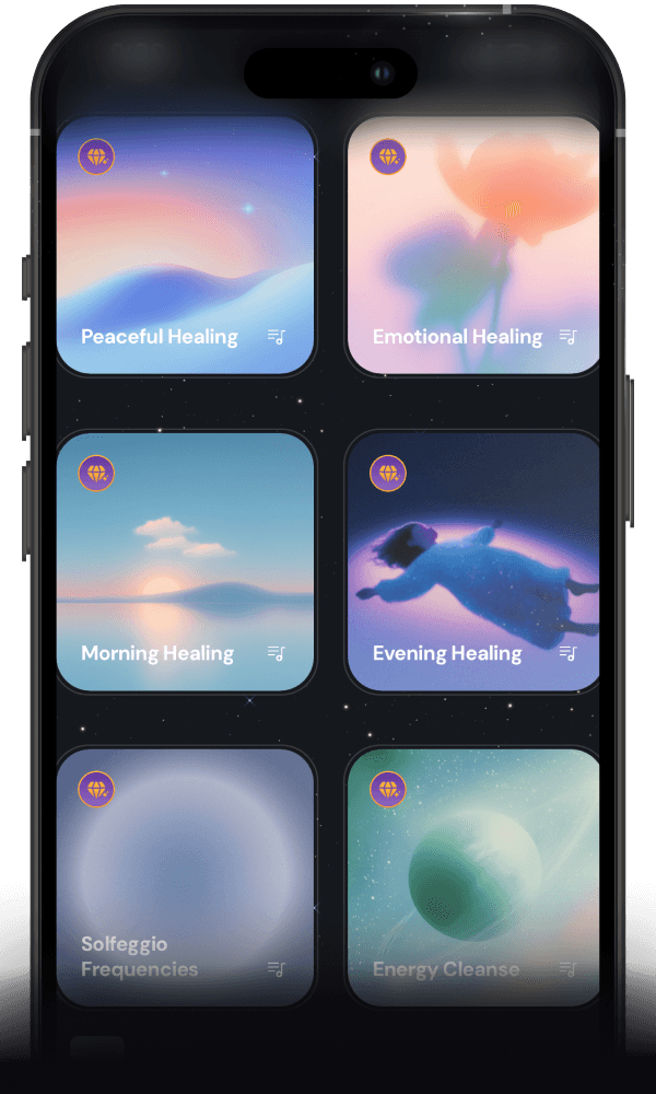 Unlock the full library of healing frequencies, binaural tracks, and transformational playlists—designed to elevate your energy in just minutes a day.